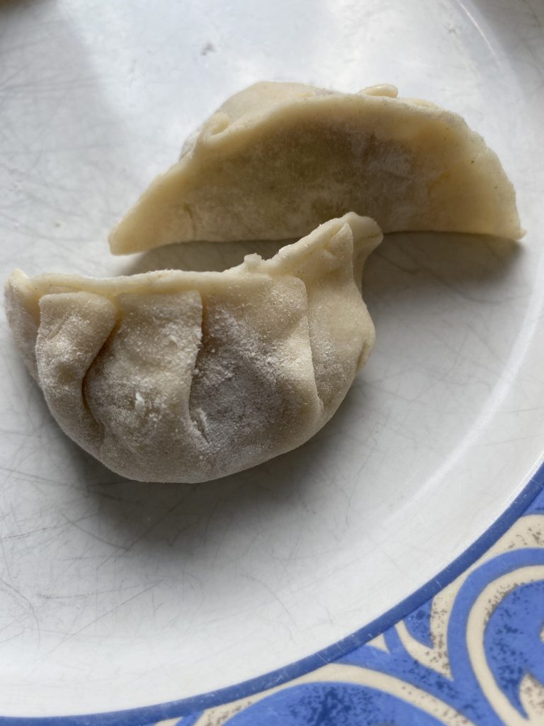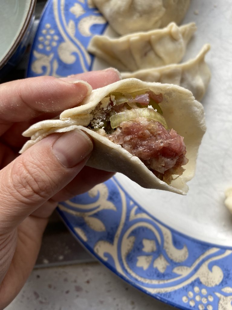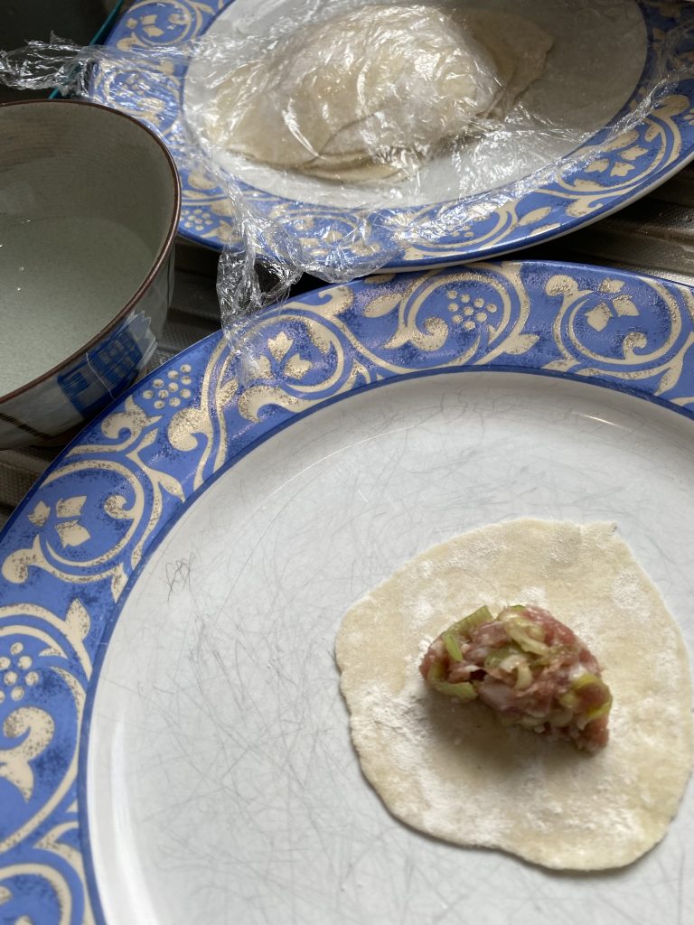 - Placer les disques de pâte sur une assiette, recouverts d’une cuillère à café de mélange de viande et de légumes et patiemment plier les gyozas en collant la pâte avec un peu d’eau. Penser à créer un côté à petits plis et un côté plat.