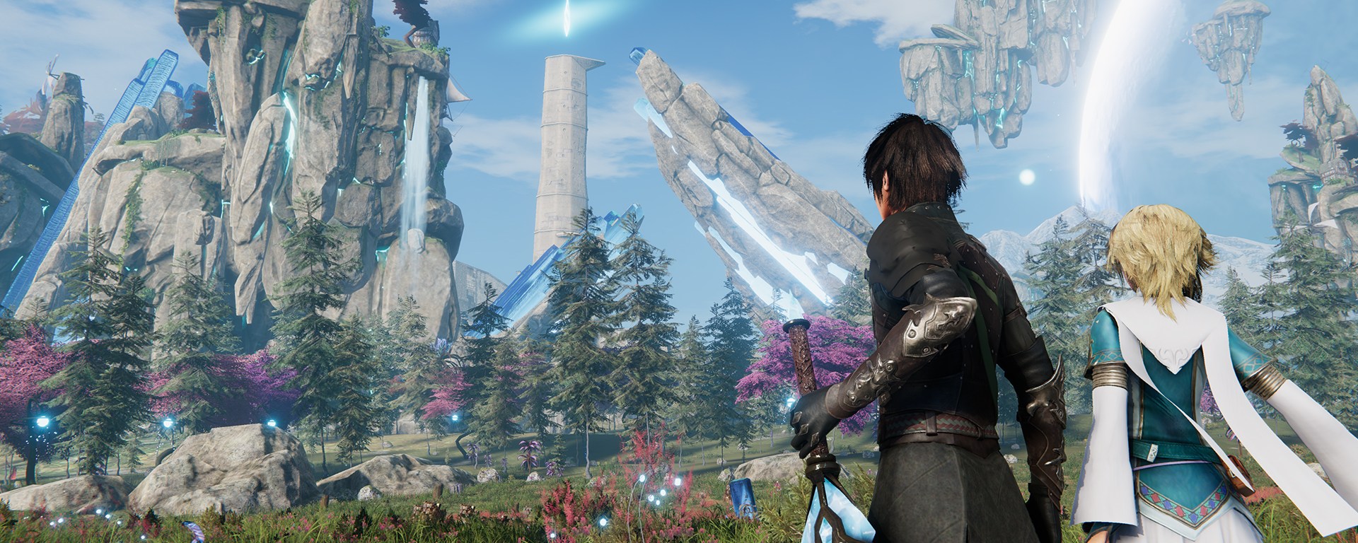 Une fois cette déception visuelle passée, intéressons-nous désormais à l’histoire du jeu et à son contenu. L’univers en présence est un bon mélange de fantaisie et de space opera. Nous sommes plongés au beau milieu d’une guerre contre des forces extraterrestres que notre héros Daryon va rapidement fuir pour rejoindre sa sœur, Selen, et sa mère. Cette dernière étant très malade, ses deux enfants réunis décident de partir en quête d’un remède qui pourrait par ailleurs s’avérer utile à tous ceux souffrant du même mal appelé corrosion. Ainsi, vous partez à deux à l’aventure et il faudra d’ailleurs attendre une dizaine d’heures de jeu avant que vous ne soyez rejoints par un premier compagnon. Si l’histoire n’est pas des plus immersives, les personnages sont en revanche attachants bien qu’assez stéréotypés ; le garçon est sombre et mystérieux jusque dans son design pouvant rappeler Noctis dans FFXV et la sœur vêtue de blanc est lumineuse et pleine d’enthousiasme. Les deux frangins s’entendent bien malgré tout et font la paire. Les dialogues entre eux sont souvent empreints d’humour et les deux protagonistes aiment se chamailler. Les personnages féminins, comme Selen, ont un caractère souvent bien trempé et sortent du lot : cela change pour le coup de la plupart des soft japonais (girl power !). L’ensemble est plutôt bien écrit que ce soit le scénario principal ou les quêtes annexes. Des dialogues bonus souvent plaisants se débloquent aussi régulièrement, comme dans un Tales of, lorsque l’on s’arrête pour ses reposer dans une auberge.