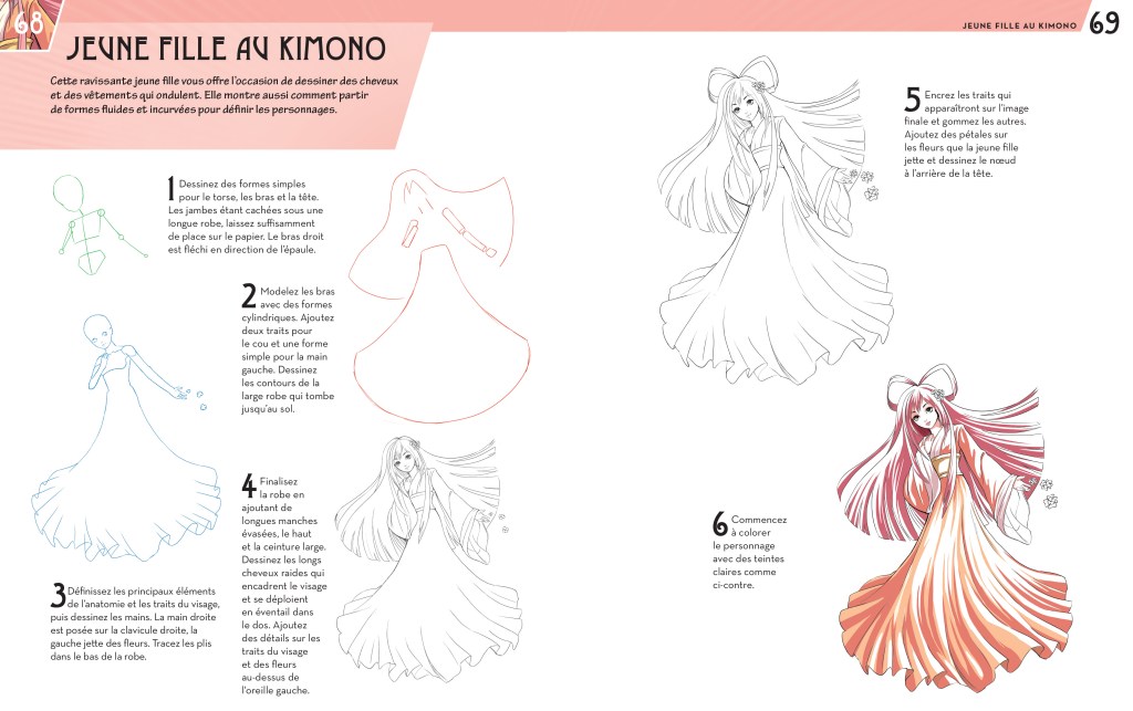 Cette approche est réellement intéressante puisqu’elle rend ces ouvrages interactifs. Il est possible de mettre en pratique immédiatement les “leçons”, et ce dans l’ouvrage même. De nombreux “Trucs et astuces” ou “Trucs d’artiste” très utiles parsèment les deux livres, et quand bien même le contenu reste plus “léger” que celui d’une méthode de dessin plus classique, comme How to Draw Manga, par exemple, il offre une approche très sympathique dans le cadre d’une première expérience en dessin. Des aides sont pré dessinées dans ces pages d’exercices. Des squelettes de poses qui simplifient la tâche du dessinateur, surtout en ce qui concerne les mouvements et le respect des proportions.