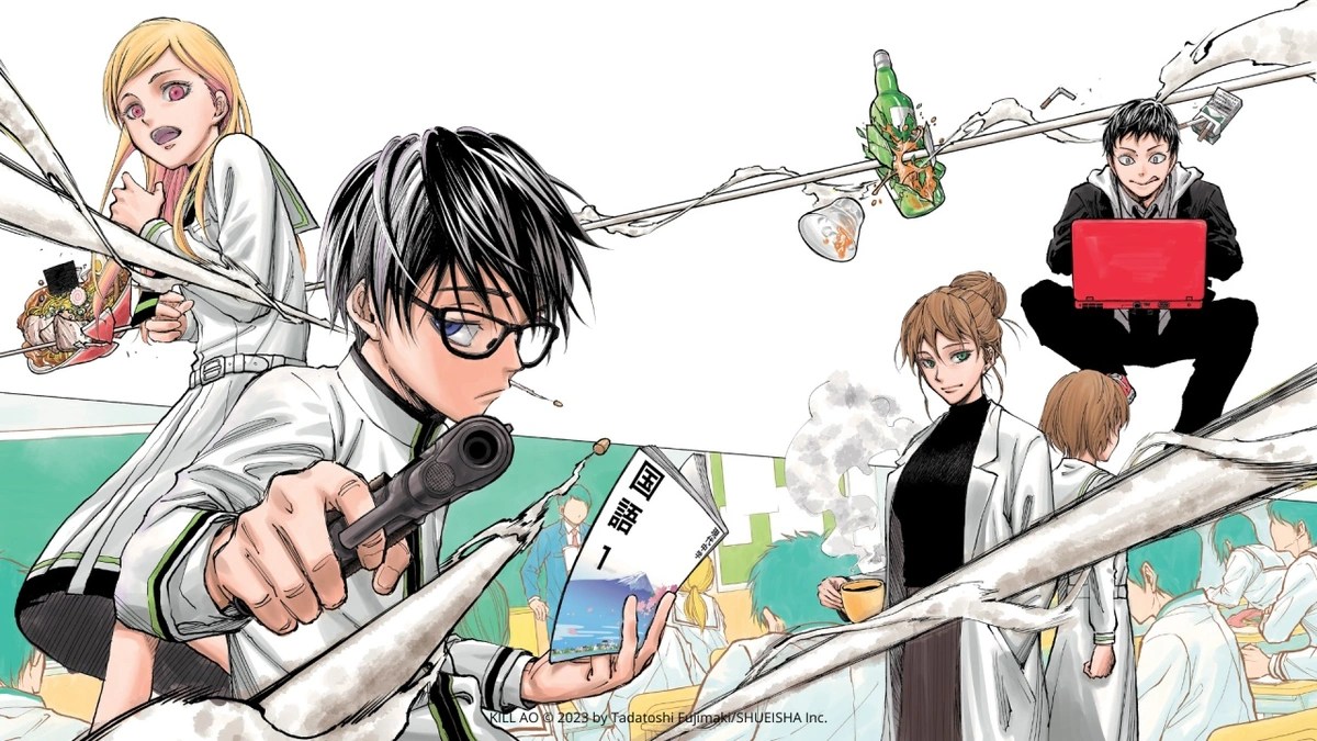 Un quarantenaire se retrouvant dans le corps d’un collégien à la suite d’une piqûre d’une guêpe étrange, pourquoi pas. Les choses se corsent dès lors que ce quadra est un tueur à gages chevronné, bien moins à l’aise avec les enfants qu’avec son revolver. Tel pourrait être le pitch de Kill Blue, un manga du Jump dont la publication débute en France en ce mois d’octobre. Loufoque et humoristique, Kill Blue parvient pour le moment à séduire sans être malaisant. Explications :